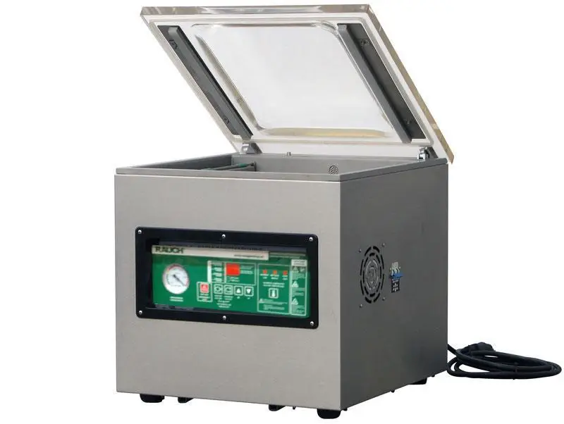 Das RVAC-400-T ist ein hochwertiges Tischgerät mit zwei Schweißbalken und einer starken Vakuumpumpe mit 20m³/h Absaugvolumen, ideal für den gewerblichen Einsatz in der Direktvermarktung, Fleischerei und Gastronomie.
