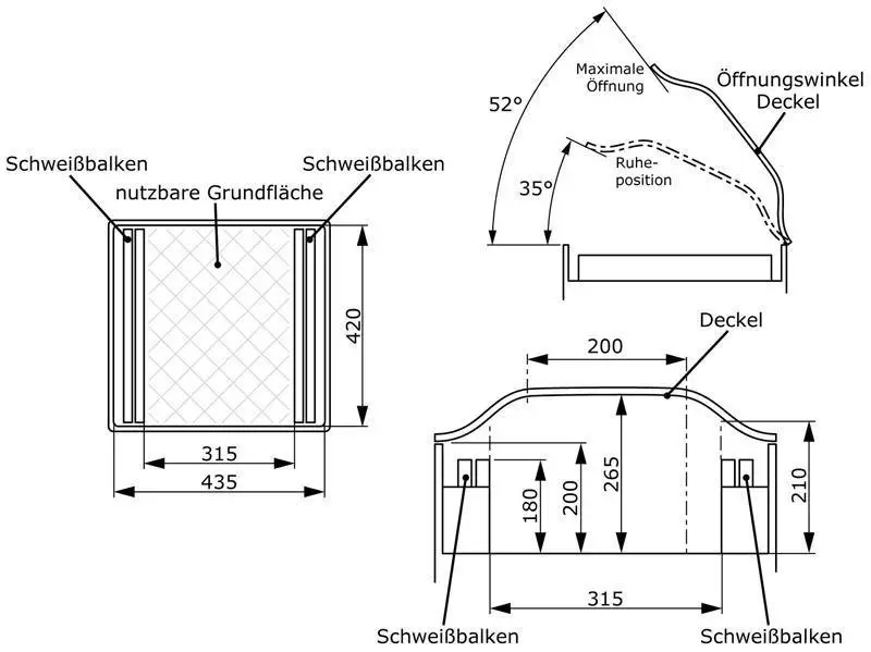 - Kammergröße (BxTxH): 440 x 415 x 70/160 mm